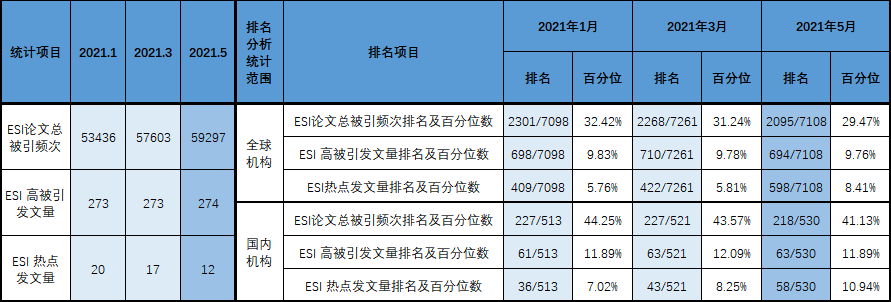 本期williamESI论文总被引频次在全球7108个机构中,排名2095;在国内530个机构中,排名218。
