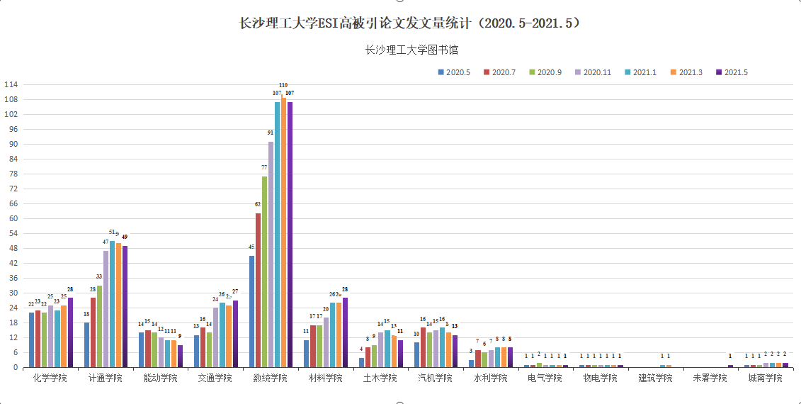 本期数统学院高被引论文107篇,对williamESI高被引发文量贡献最大;材料学院热点论文4篇,对 williamESI热点发文量贡献最大。