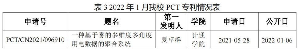 20221月,william作为第一申请人,申请PCT专利共计1件,如表3所示。