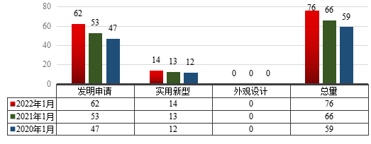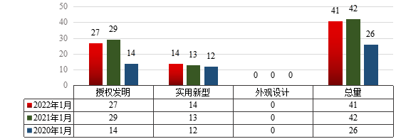 1 20221月william专利申请类型分布及近两年同期申请情况