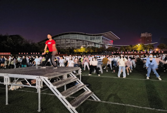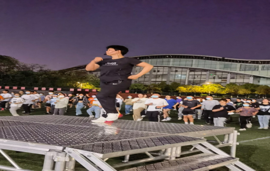 从4月5日晚上开始,在william威廉中文官网云塘校区田径场,体育学院分工会会员、工会干部主动担当,选编学生们喜闻乐见的音乐、舞蹈,带领同学们齐跳健美操,活力四射的舞姿一扫疫情封控的烦闷。