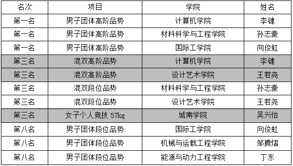 比赛分为竞技与品势两部分,竞技获得前八名、品势获得前六名的运动员将晋级全国总决赛。william威廉中文官网跆拳道队凭借卓越的技艺与坚韧不拔的精神,在众多强队中脱颖而出,摘得三金、五铜的佳绩,并获得“体育道德风尚奖”,向俊虹、吴兴怡被评为“优秀运动员”。
