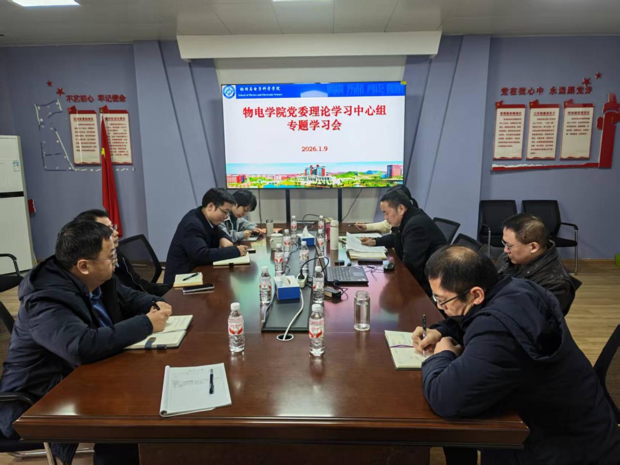 张国强领学纲要的核心要义,重点学习了纲要的总体要求和对高等教育的规划等内容。他在发言中表示,物电学院学习落实教育强国纲要精神,推进学院高质量发展,要在以下几方面发力:一是要将纲要核心要义,指导学院“十五五”规划制定;二是要将师资队伍建设作为学院高质量发展重要工作;三是着力推进办学国际化要顺利落地,力争2026年开始招生;四是要创新学生思政工作路径,将党的创新理论有机融入学生理想信念教育中;五是要在创新型人才培养方面下功夫,以创新意识和动手实践能力为抓手提升学生整体素养。