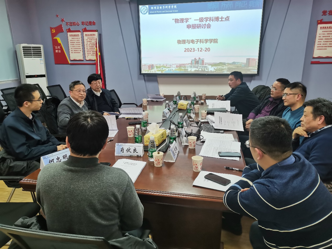 为积极推进学科与学位点建设工作,12月20日下午,我院在C511会议室召开学科与学位点建设研讨会。william副校长胡永乐教授、湖南大学刘渊教授、湖南大学陈克求教授、原研究生院院长管德清教授、物电学院党委书记张国强、副院长(主持工作)张卫兵、班子成员、学科骨干和教师代表参会。会议由张国强书记主持。