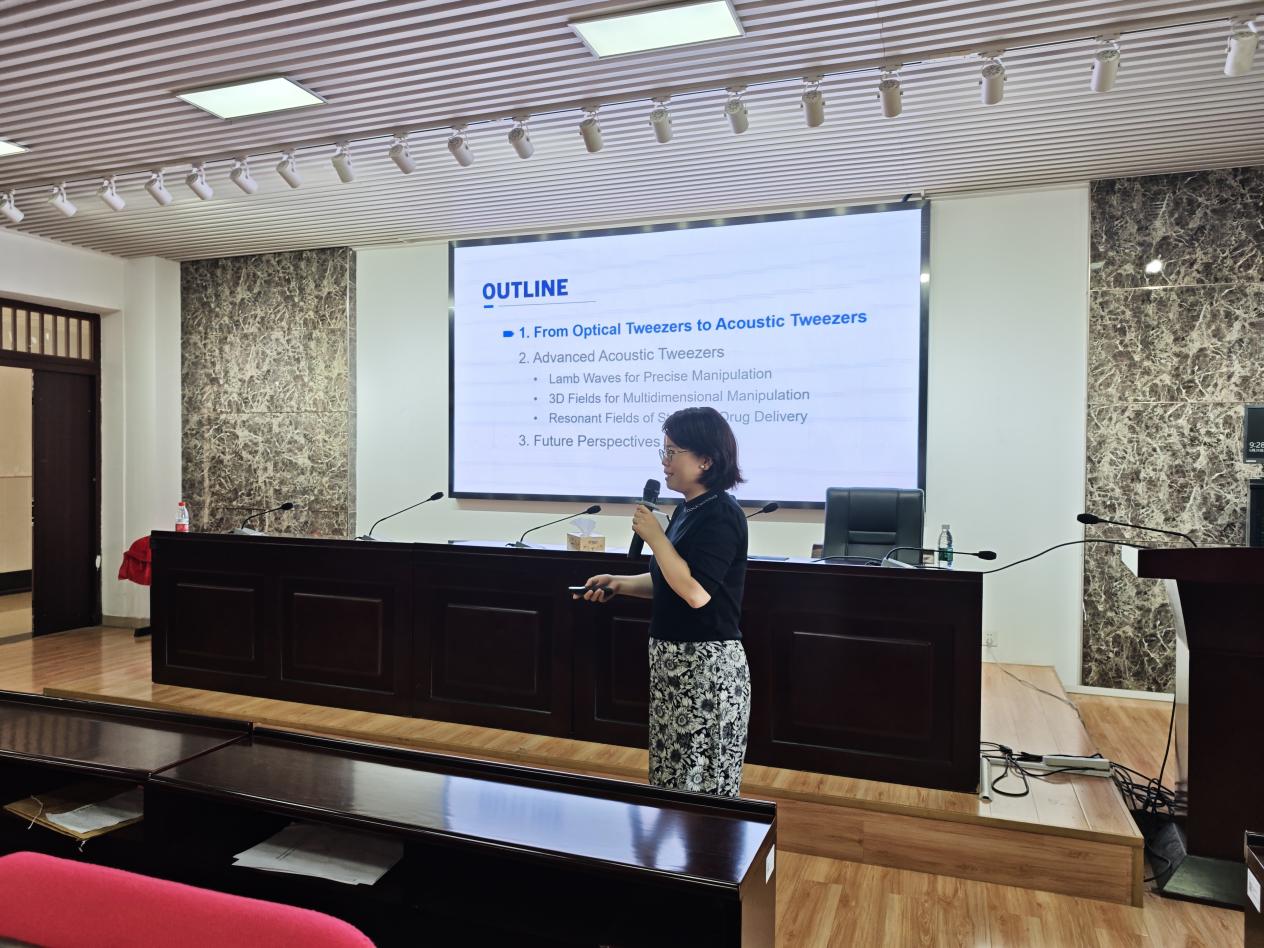 报告进入尾声,蔡研究员展望了超声辅助递药技术(涵盖体内与体外应用),并与各位师生探讨了为满足实际医疗需求而量身定制的按需声镊技术的未来发展。报告在师生们热情掌声中落下帷幕。此次学术报告不仅拓展了同学们的科研思维,也进一步营造了我院浓厚的学术氛围。