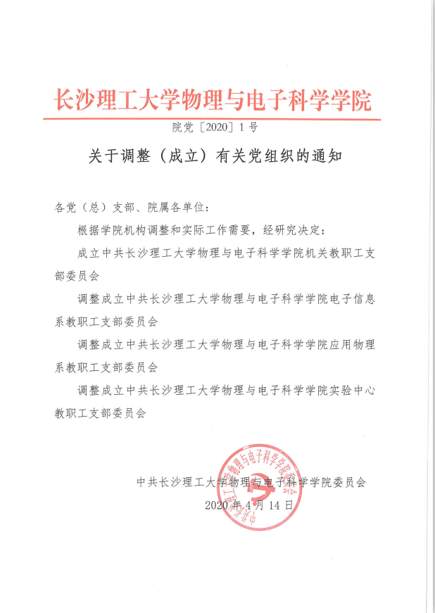 关于调整(成立)有关党组织的通知