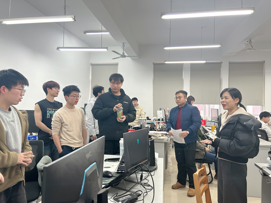 为切实强化寒假期间校园安全管理,筑牢研究生科研学习安全防线,1月23日下午,物电学院党委副书记叶正芳带队,组织研究生辅导员蒋琳嫒、研究生会骨干组成专项检查小组,对云塘校区20余间研究生工作室及科研实验室开展全覆盖、无死角安全专项排查,以“查隐患、堵漏洞、强意识”为目标,扎实做好寒假安全防范工作。