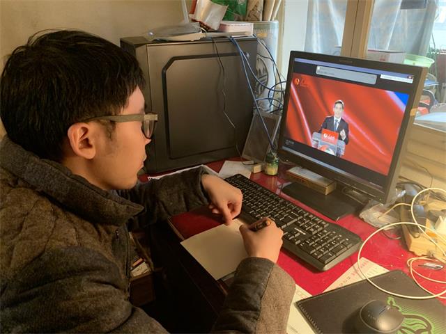 19级新生辅导员姚巍老师身处疫情中心湖北,他也准时用电脑观看此次课程,姚老师说:“这堂大课对于我而言体会和感触更为深刻,对‘今日之中国’、‘中国之制度’有了更深刻的理性思考和情感认同。作为一名与学生朝夕相处的辅导员,我更要切实面向学生开展好思政教育,增强四个意识,坚定四个自信,做到两个维护,用习近平新时代中国特色社会主义思想铸魂育人。”