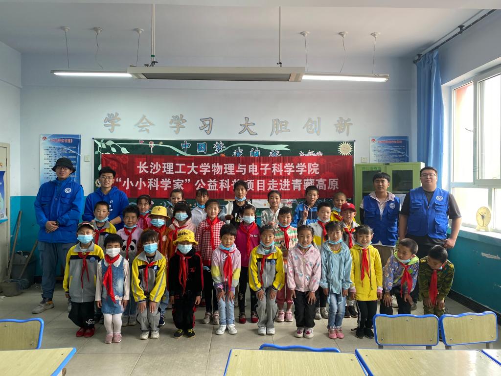 自物电学院成立“小小科学家”中小学物理科普教育项目团队以来,团队成员不断进取努力,在励志为孩子们播种科学梦想之路上取得一次又一次的成绩,该项目不仅在湖南省青年志愿服务项目大赛取得金奖,也在2020年暑期走进青海省,为青藏高原的孩子们种下科学的种子。