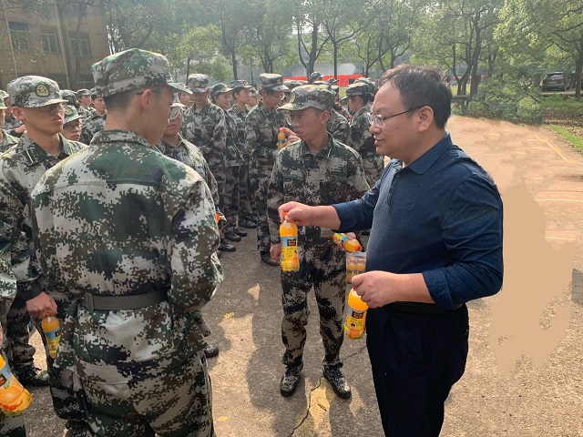随后,学院领导将慰问品一一发放到每位同学手中,他们来到参训学生中间,仔细询问军训适应状态、遇到的困难等情况,鼓励大家要克服困难,在军训中提升自己的意志品质。新生们深受鼓舞,都表示在未来的训练中要展示物电人的精神与气质,圆满完成本次军训任务。学院领导还叮嘱带训教师要在军训过程中关爱学生,在保证军训任务圆满完成的同时做好新生的思想工作、安全工作和心理健康教育工作。