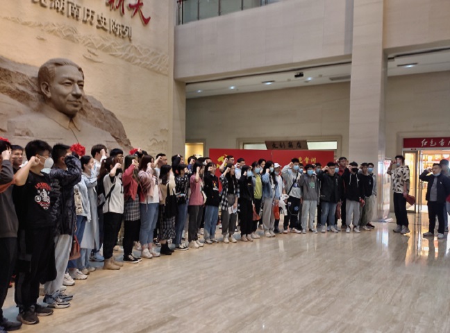 湖南党史陈列馆以“中国共产党湖南历史陈列”为展标,展陈了560多个党史事件和480多位湖南党史人物,在老师们细致的讲解下,从“开辟新天地”到“湖南解放”,中国共产党人在革命道路上付出了无数努力,张张照片,页页报纸,幅幅画卷…每一个物品都是中国共产党人一路走来的见证,都定格了那个时代的光芒与正气。战争的残酷、党员们的艰苦奋斗、英雄们视死如归的精神,历历在目,激励着无数中国共产党人。长征路上的不畏艰险、咬牙前进的红军战士们、抗日战场上为国捐躯的壮士们……没有曾经拼死拯救国家的他们,就没有今天幸福的我们。同学们认真听、仔细看、用心悟,不仅巩固了党史知识,思绪也瞬间被带入到战火硝烟和激情燃烧的岁月,点燃大家不畏艰险、英勇奋斗、攻坚克难、一往无前的澎湃激情。