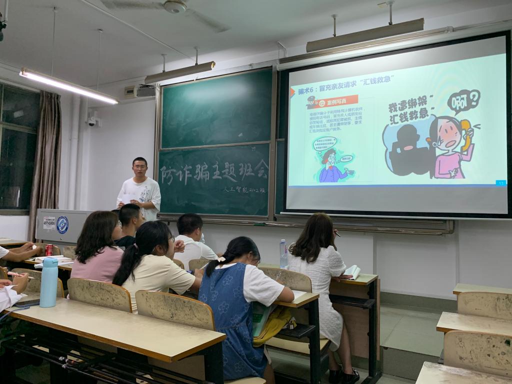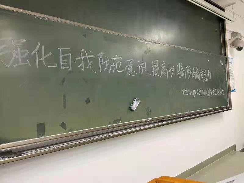 根据学校反电诈工作推进会的要求,为提高学生的反诈骗意识,杜绝电信诈骗事件发生,为学生提供一个安全又健康的假期环境,9月25晚七点,物电学院组织全院各班级举行“强化自我防范意识,提高识骗防骗能力”反诈骗与假期安全主题班会和反诈签名活动。