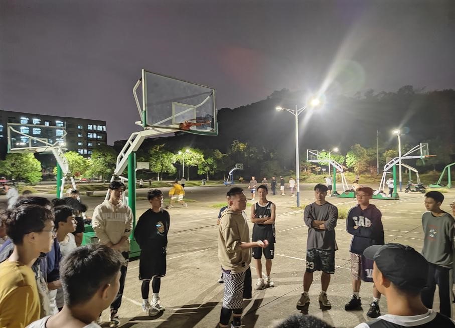 本次选拔活动共有11名新生参加,在选拔开始前,先由篮球队队长李龙飞进行发言,讲述选拔规则。之后采取篮球队队员与新生5v5比赛的形式进行考核。比赛一直持续到晚上八点。结束后,由篮球队前队长王宇池为大家讲话。
