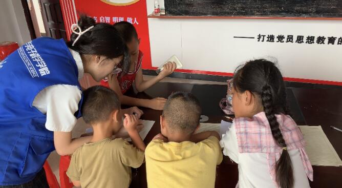 美术课怎么变成了历史课?这是william威廉中文官网物电学院支教团7月7日在怀化市麻阳县通达林村开展的爱国主题美术课堂。