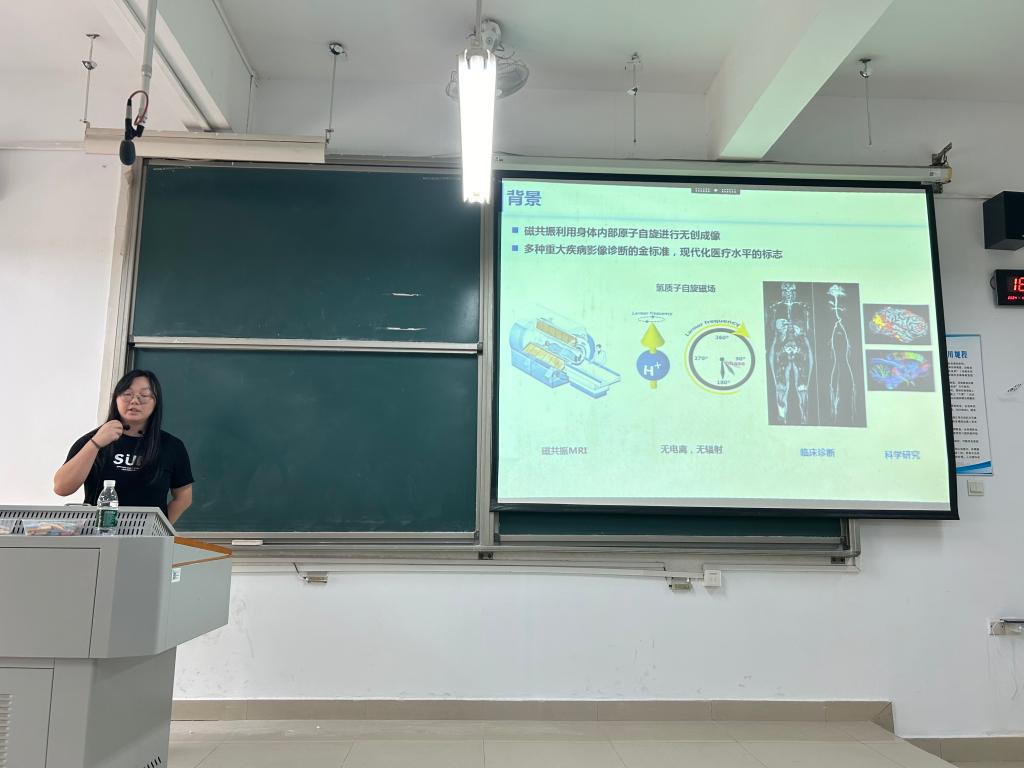 听完之后,同学们都感受到邹博士在这个领域浓厚的知识底蕴,大家激情澎湃自发响起阵阵热烈掌声。提问答疑环节,大家依次提出了自己的疑惑,邹博士也耐心的为大家一一解答,加深大家对本次讲座知识的理解。这次讲座激发了同学们对磁共振成像的兴趣,同时大家也学习到了丰富的知识,开拓了视野。