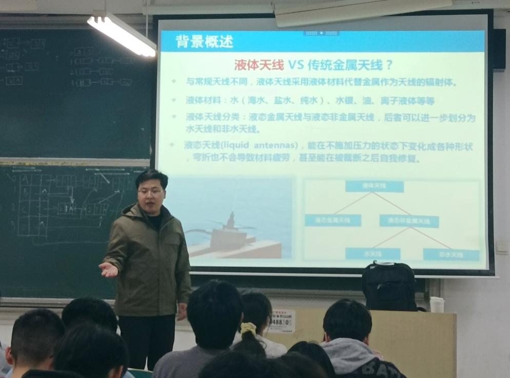 在互动环节,张超博士与同学们就材料科学、电磁仿真等专业问题展开深入探讨,现场气氛热烈。多名学生表示,此次讲座不仅拓宽了学术视野,更点燃了投身前沿科技研究的热情;而本次讲座通过系统性的技术解析与前瞻性的应用展望,既展现了液体天线技术从理论突破到产业落地的完整链条,也体现了我院在通信技术领域持续探索"科研-育人"协同发展的不懈努力。