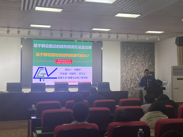 12月14日16:00,物电学院博力学术论坛之基于群论和商图的晶体结构随机搜索软件RG2及其应用专题讲座在理科楼B413举行,本次主讲嘉宾为湘潭大学何朝宇教授。讲座由副院长张卫兵主持。