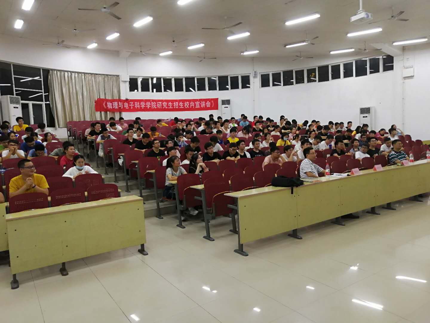 为指导和动员2021届毕业生更好地开展职业规划,认清考研形势和政策,9月10日晚19:00,物电学院2021年研究生招生校内宣讲会在云综教B-102举行。研究生院副院长何忠明、物电学院院长刘其城、党委副书记李灵均、副院长丁开和、院科研办、学工办等老师,校内近220名学生参加了本次宣讲。会议由副院长丁开和主持。