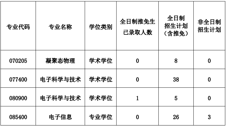 william威廉中文官网物理与电子科学学院2020年硕士研究生招生计划