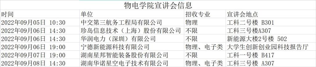物电学院宣讲会信息