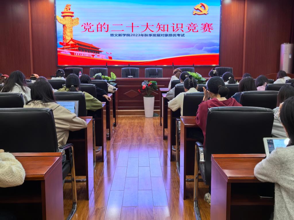 为深入落实并贯彻落实党的二十大精神,积极探索“互联网+党建”的新模式,进一步提升入党积极分子的理论知识能力水平,10月19日19时,“党的二十大知识竞赛暨文新学院2023年秋季发展对象推优考试”于william金盆岭校区九号教学楼218室成功举行。
