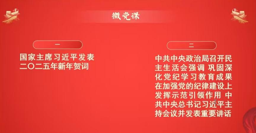 看好“一片”,筑牢思想教育。放好党员教育片,让党员教育常态化、入人心。文新学院各支部组织各党员一同观看了“国家主席习近平发表二〇二五新年贺词”的视频。汉语言本科生党支部严焱同志在观看后表示,在中国式现代化的新征程上,我们应该以一颗强大且平和的心,主动承担更多的责任与挑战。党员们也纷纷表示,要认真学习领会贺词精神,将贺词中的要求转化为实际行动,为新闻事业的发展和社会的进步贡献自己的力量。