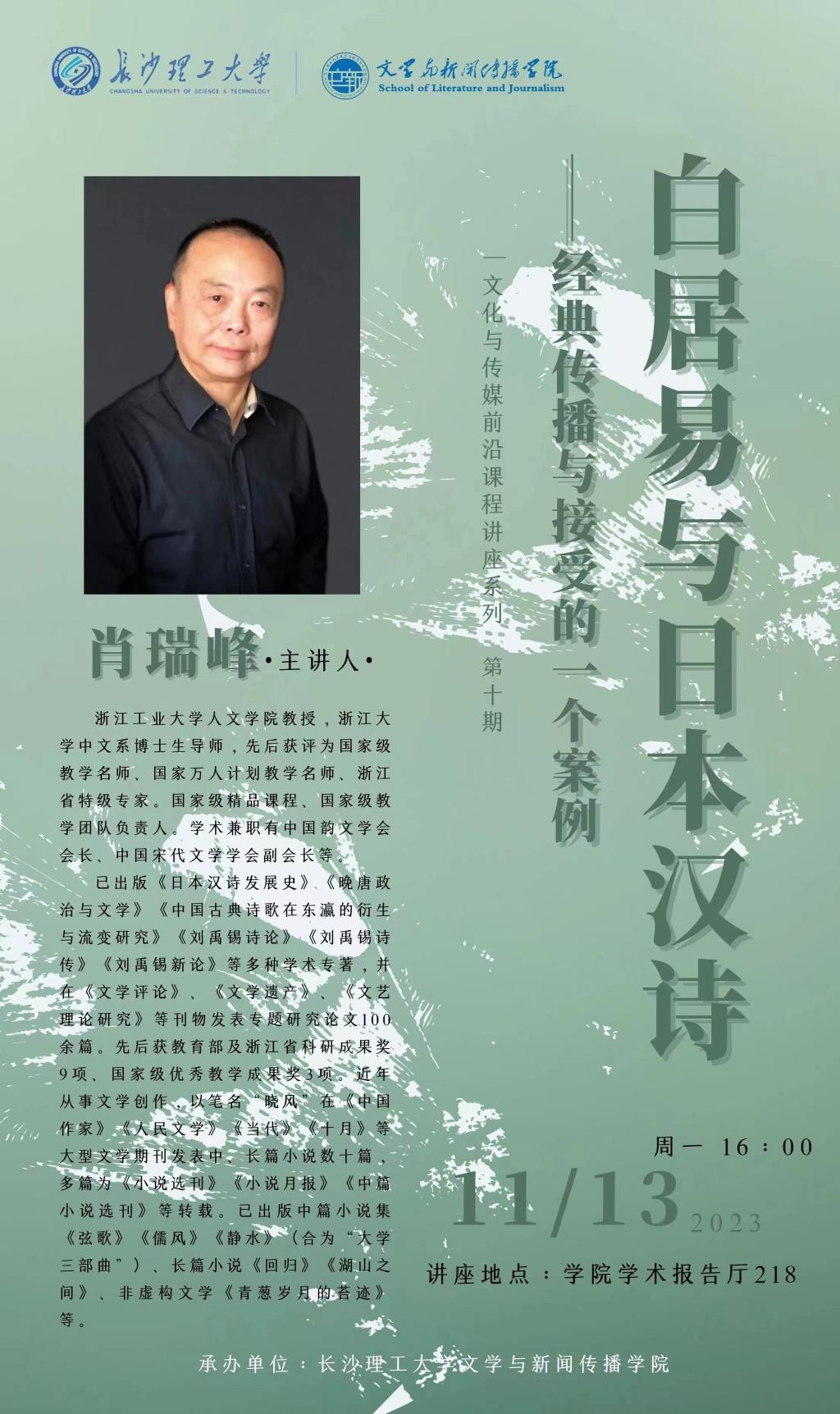 讲座预告:白居易与日本汉诗——经典传播与接受的一个案例