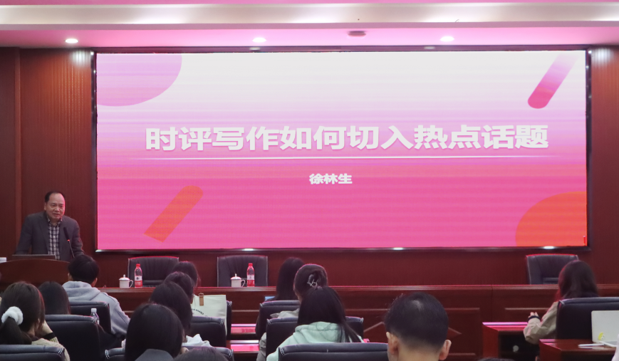 讲座现场,徐林生老师深入阐释了新闻时评应承载的四重核心社会影响力。他强调,优质的新闻时评首先应是“引导舆论的纠正器”,在众声喧哗中锚定价值坐标、澄清认知偏差,助力形成理性共识;其次要当好“透视热点的显微镜”,穿透事件表象挖掘深层逻辑,让受众看清现象背后的本质与根源;更需成为“解决问题的新处方”,基于客观分析提出切实可行的思路建议,为矛盾化解提供有益参考;最终还应扮演“推动舆情正向发展的助推器”角色,以正向引导凝聚社会合力,促进公共议题朝着积极健康的方向推进。