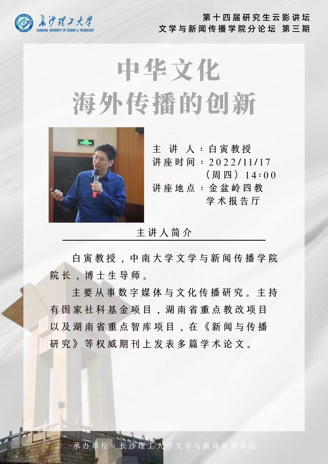 白寅,教授,中南大学文学与新闻传播学院院长,博士生导师,主要从事数字媒体与文化传播研究。主持有国家社科基金项目,湖南省重点教改项目以及湖南省重点智库项目,在《新闻与传播研究》等权威期刊上发表多篇学术论文。