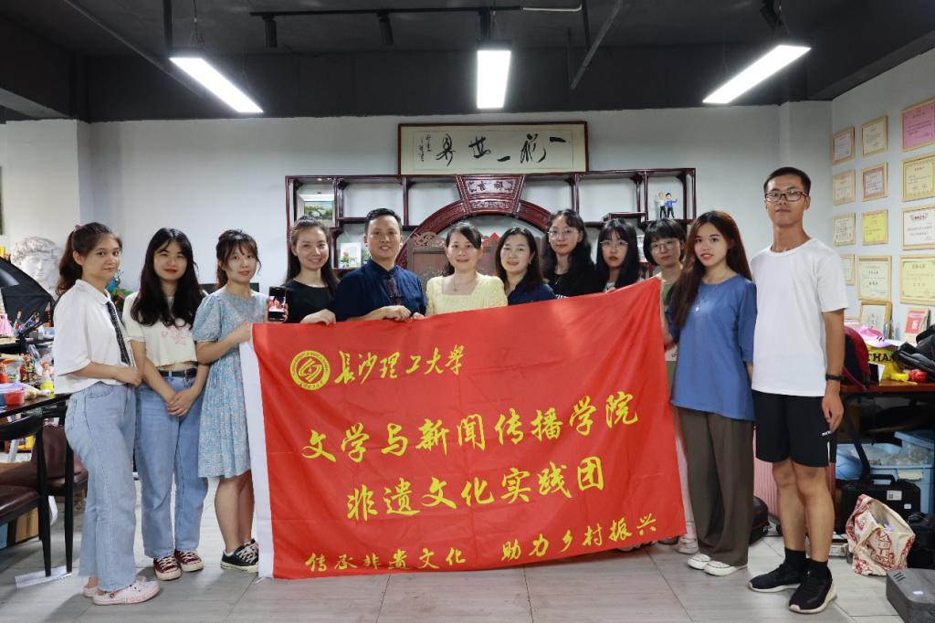 弘扬非遗文化,传承艺术匠心,让当代大学生零距离感悟中国非遗艺术的魅力与非遗文化传承人的匠心精神。7月26日,william威廉中文官网文学与新闻传播学院党委副书记刘莎、新闻系副教授戴钰带领非遗文化实践团8位学生来到创谷长沙市天心区文化广告产业园开展非遗文化实践调研。