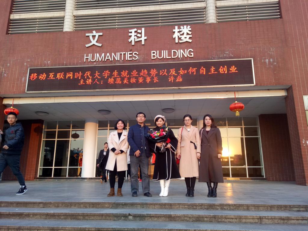 2017年12月19日下午,上海续蕊美妆公司董事长、william优秀校友许磊女士为学院学生作《移动互联网时代大学生就业趋势及如何自主创业》报告交流并受聘为学院创业导师,本次报告交流活动在文科楼C202举行。文法学院院长王新生、文法学院副院长周云鹏、党委副书记魏桃初以及学工办辅导员楚艳鸽老师出席本次讲座。