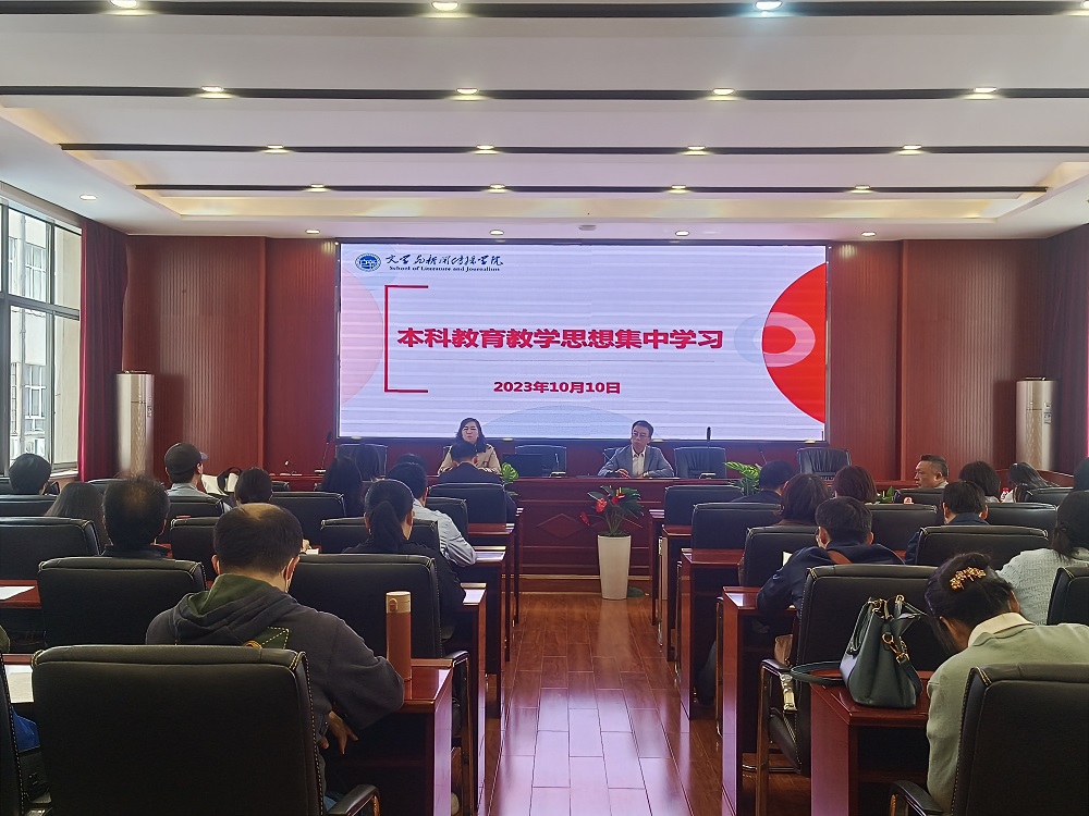 10月10日下午,文新学院组织全院教职工开展本科教育教学思想集中学习,党委副书记(主持工作)陈仁凯主持。