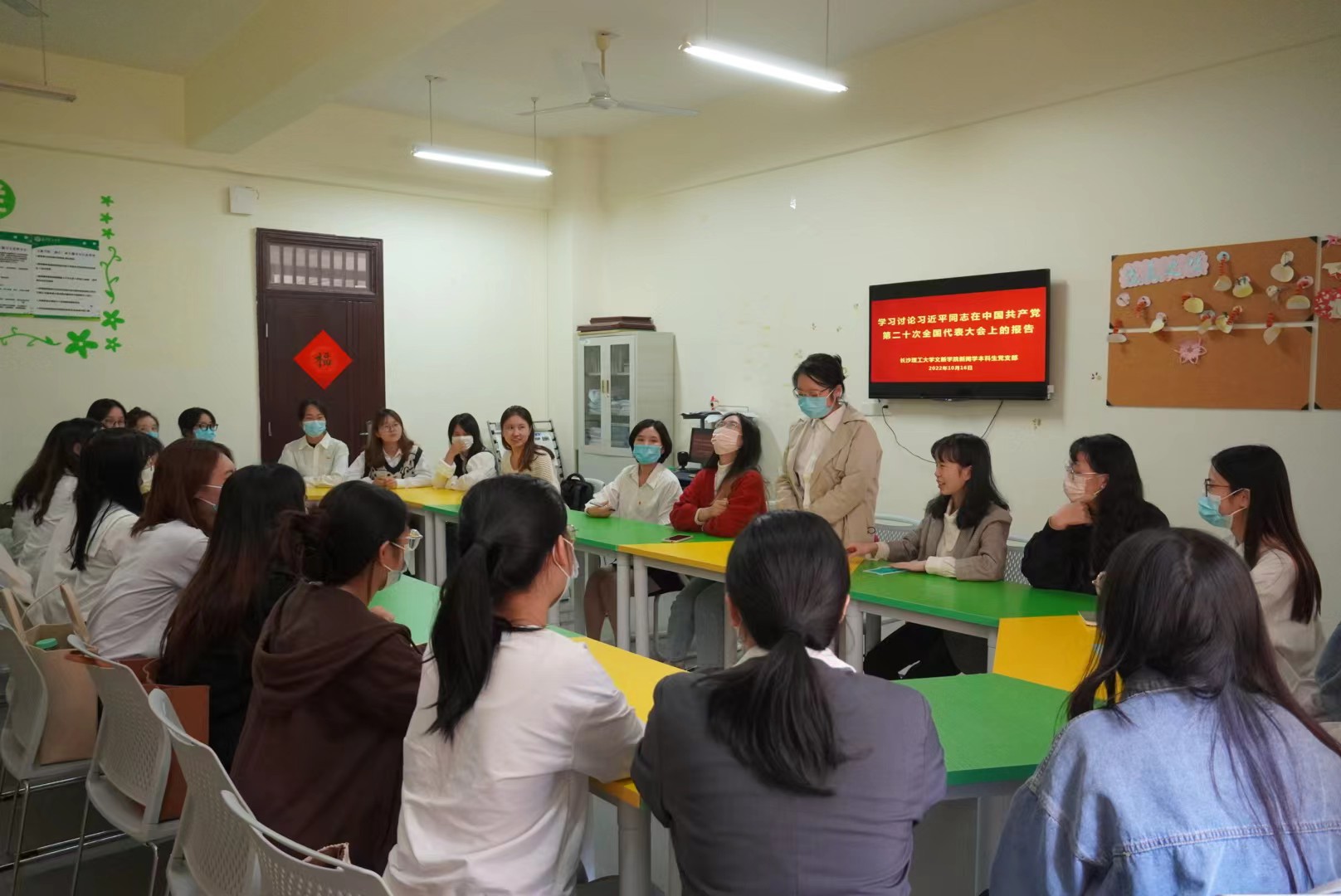 学习讨论会由文新学院党建辅导员楚艳鸽主持,她指出从党的十八大到党的二十大,十年时光,成就非凡,我国已建成世界上规模最大的教育体系,作为一名教育工作者她为党和国家取得的历史性飞跃感到无比振奋。成为德智体美劳全面发展的社会主义建设者和接班人,这是党和国家赋予新时代青年的重要使命,楚艳鸽希望学生党员们遵循习近平总书记的指示精神,怀抱梦想又脚踏实地,敢想敢为又善作善成,立志做有理想、敢担当、能吃苦、肯奋斗的新时代好青年。