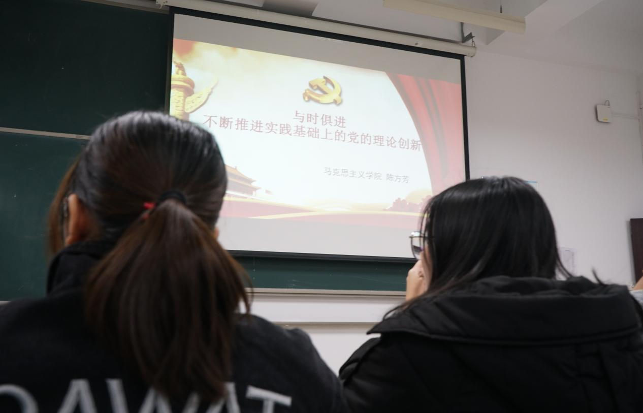 11月9日18:30,文学与新闻传播学院第38期入党积极分子培训班第三课《与时俱进不断推进实践基础上的党的理论创新》在三号工科楼A208教室举行。本次由马克思主义学院陈方芳老师授课。