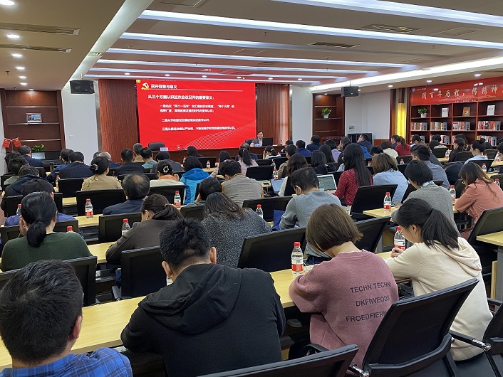 刘建民从“会议概况”、“召开背景与意义”、“主要精神”以及“如何贯彻落实”四个部分展开,全面分析解读此次党代会精神;回顾了学校第三次党代会五年以来快速发展的历程,抓重点强内涵,学校事业发展取得新突破;他强调和阐述今后五年学校发展战略、目标任务,合理规划布局,为实现学校“十四五”提出的——决胜建成“百强”大学而接续奋斗。