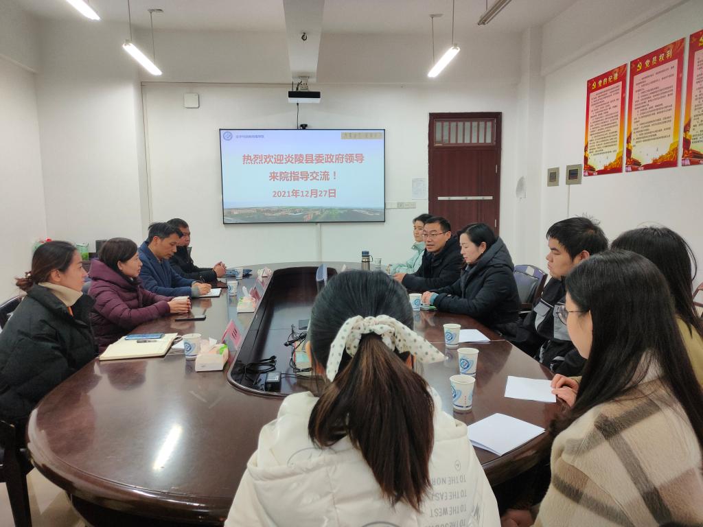 12月27日下午,湖南省炎陵县县委常委、宣传部部长沈红星,副县长肖志高与县电视台台长肖美群,副台长陈聪一行来到文学与新闻传播学院进行指导交流,我院副院长魏桃初,宣传部副部长戴钰,院就业专干吴笛出席本次会议。