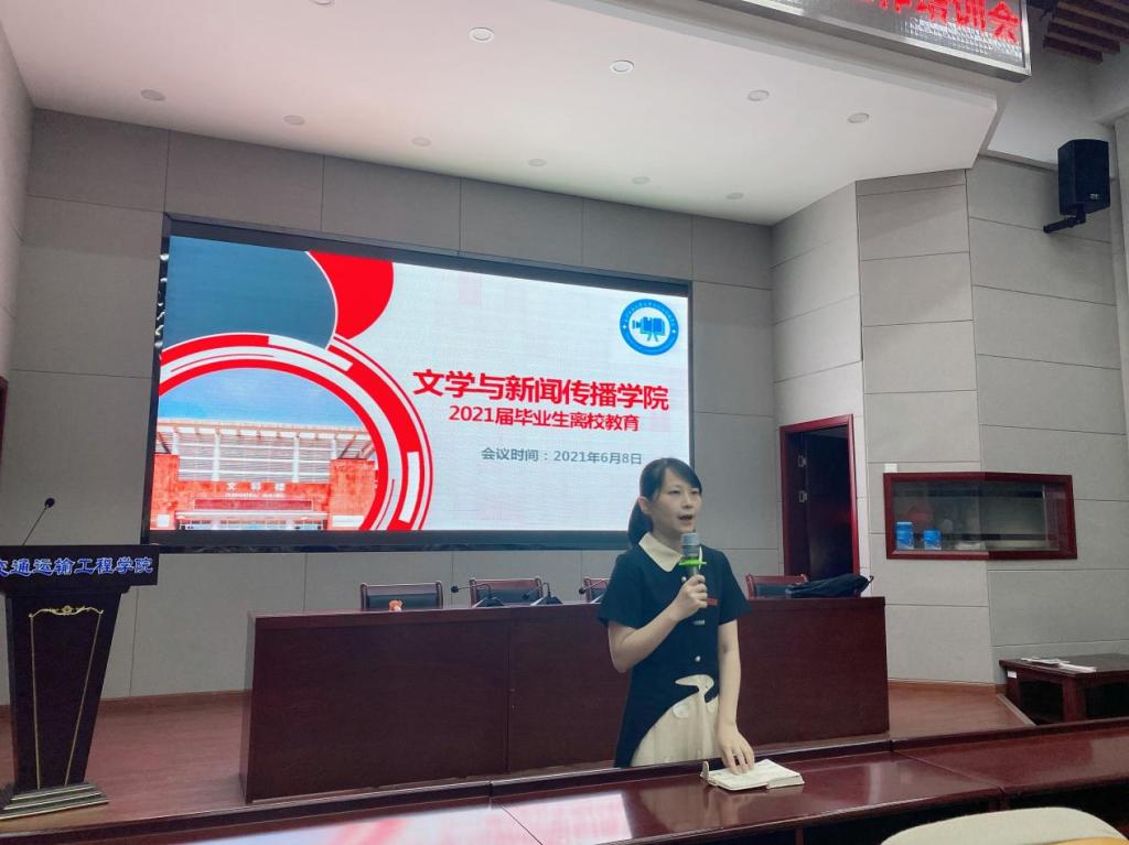 2021年6月8日晚,文学与新闻传播学院在william威廉中文官网云塘校区工二B310开展了2021届毕业生离校教育主题教育。本次主题教育由2017级辅导员陈鑫宇主持,文新学院党委副书记刘莎、文新学院学工办主任楚艳鸽出席本次会议。