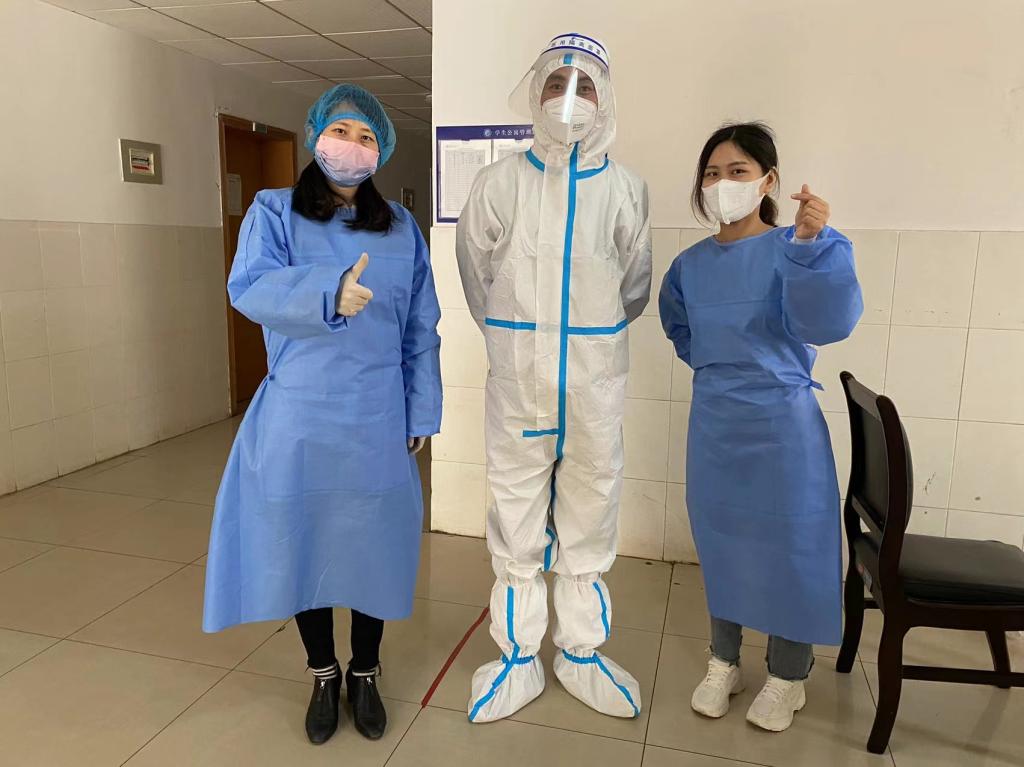 (李敏担任疫情防控中核酸检测志愿者)