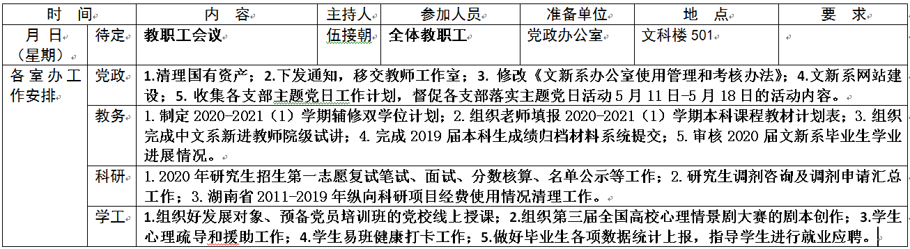 文新系2019-2020 学年度第二学期第十三周工作安排表