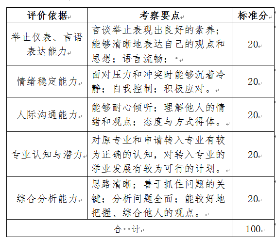 6.在满足学校转专业有关规定的前提下,申请转入学生需服从学院安排,参加学院组织的面试,按照综合成绩从高到低择优转录的原则进行。