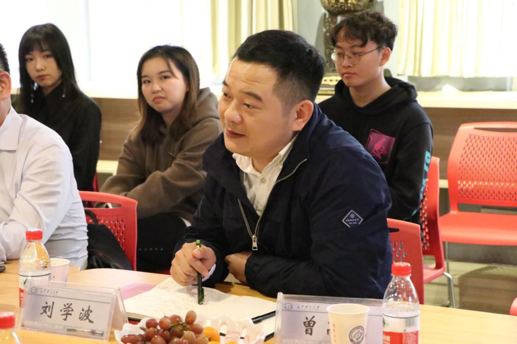 座谈会上,周云鹏为大家介绍各位校外导师。同学们热烈欢迎各位导师的到来,并向导师们送花表达诚挚的感谢。