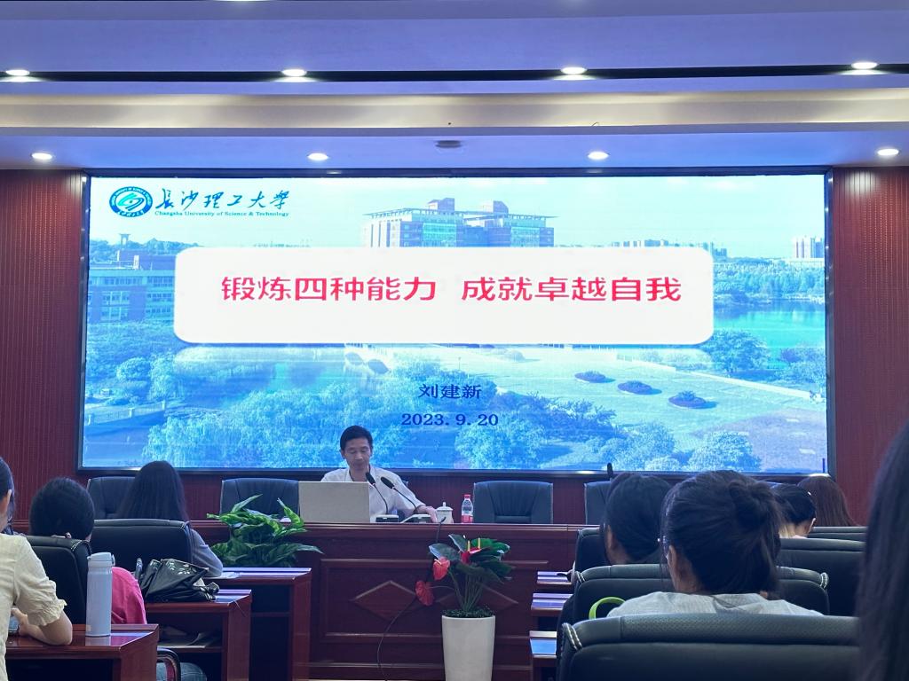 9月20日下午,文学与新闻传播学院在金盆岭校区九教218报告厅召开“院长第一课”。文学与新闻传播学院院长刘建新担任主讲人,2023级全体研究生新生聆听了此次讲座。