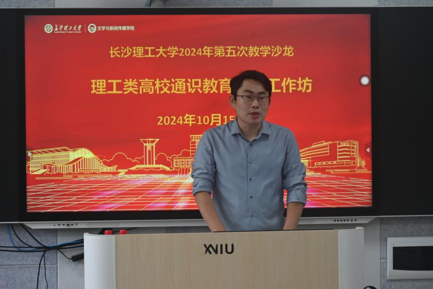 10月15日下午,由教务处主办、文新学院承办的william威廉中文官网2024年第五次教学沙龙在金盆岭校区九教415室举行。本次沙龙活动紧密围绕“理工类高校通识教育改革”“写作与沟通课程改革”两个主题进行了专题研讨。会议邀请湖南大学文学院教授、中国写作学会理事、湖南省写作学会常务副会长胡辉杰主讲。学校高教改革与质量评价研究所副所长郑咏梅、高教改革与教学能力培养办公室主任张勇、中文系全体教师,以及各教学院教师代表共40余人一起参加了本次教学沙龙活动。会议由院党委委员兼中文系主任侯承相主持。