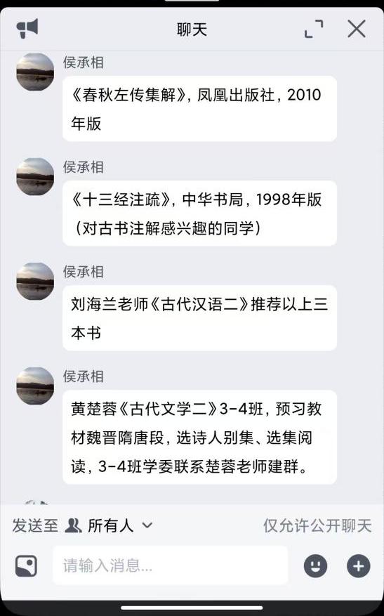 侯承相老师首先向大家明确了本次会议召开的背景。接着,各位任课老师从教学课程出发,依次向同学们详细讲解了课程要求与预习方向,并提前组织各班学习委员建立课程群进行沟通,介绍教学计划,发布相关学习资料与通知。与会老师在发言中强调指出,汉语言文学专业学习要注重提高阅读量,加强经典作品阅读,积极参加学科竞赛,号召大家把握好大二下学期,快速提升自身综合素质。