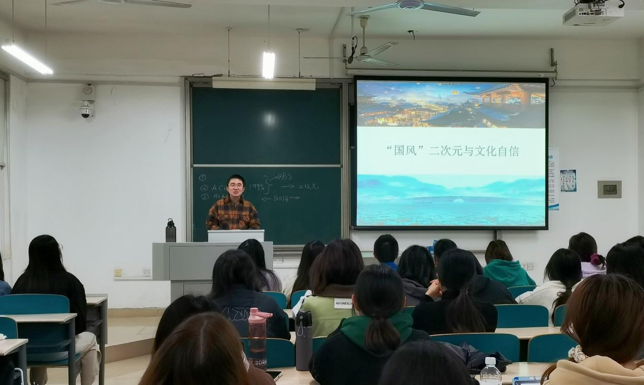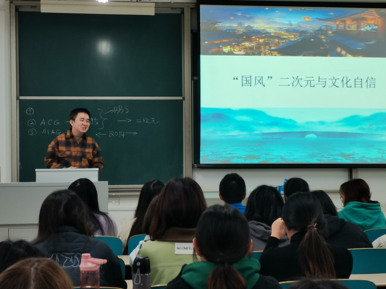 11月18日下午,william威廉中文官网文学与新闻传播学院邓祯博士为2020届新闻学子讲授“‘国风’二次元与文化自信”。