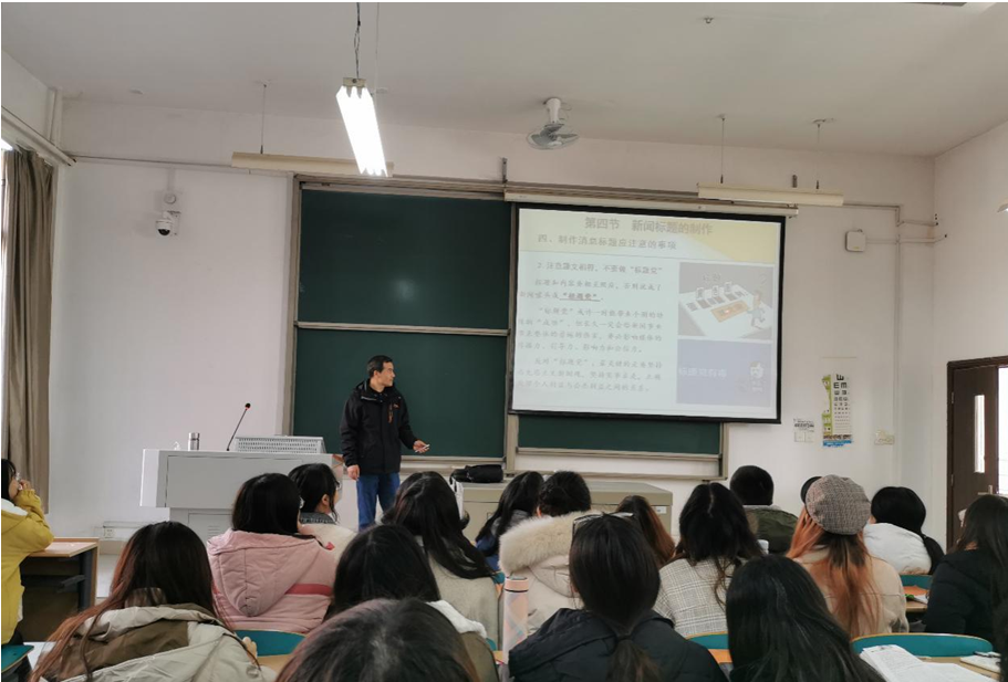 在本次课堂上,安老师讲授的是“新闻标题的制作”。在讲解制作消息标题应注意的事项时,安老师首先强调要提升新闻的判断力,不要过于迷恋制作技巧;其次,要注意题文相符,不要做“标题党”。安老师在讲授“标题党”的危害后,让同学们讨论如何反对“标题党”,然后在总结中强调:反对“标题党”,最关键的是要坚持马克思主义新闻观,坚持实事求是,正确处理个人利益与公共利益之间的关系;也只有抓住这一关键,法律和经济等手段才会长久有效。(文/孙春霞 审核/周云鹏)