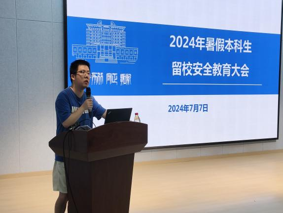 暑假将至,为进一步加强学院安全管理工作,确保暑假留校学生的生命财产安全,7月7日上午,文学与新闻传播学院在九教一楼演播厅召开2024年暑假留校安全会议,学生党总支副书记陈鑫宇以及全体暑假留校学生参与此次会议。