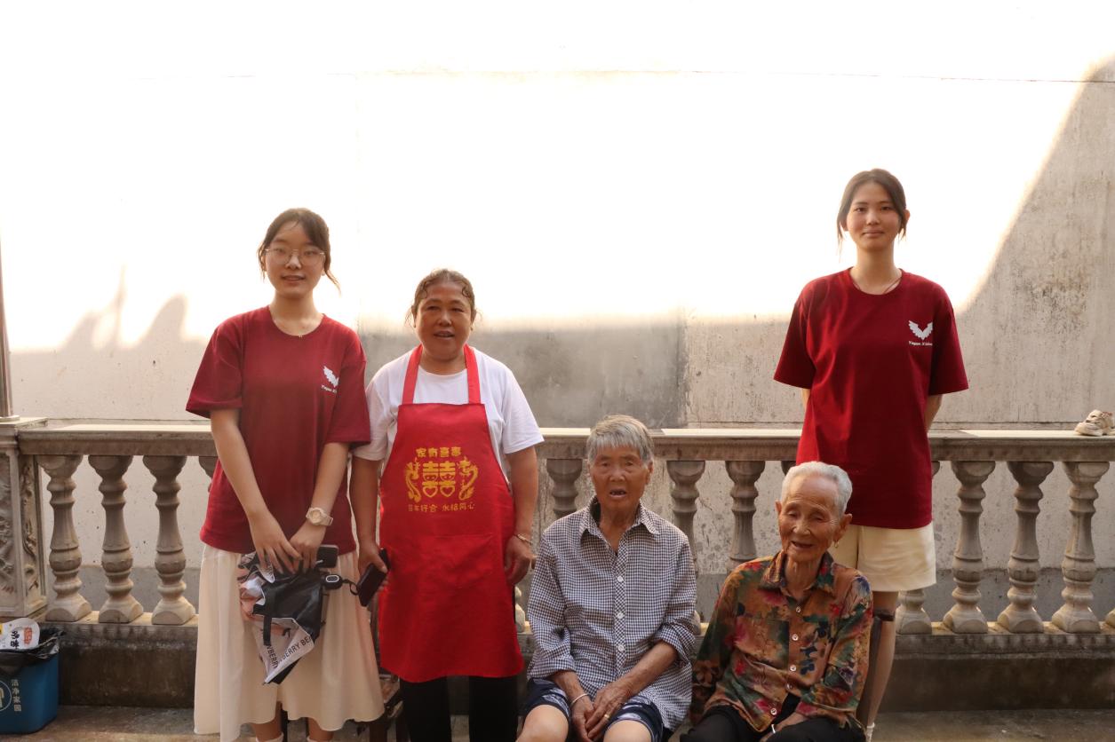 课程顺利开展的同时,团队调研小组在大陂流村内挨家进行走访,调查该村的经济状况、人口结构及民族分布。经了解,空巢老人在常住人口中占比较大,“语韵新风”团队以“访”为重心,在走访过程中关爱空巢老人,为他们带去温暖,拉近彼此之间的距离。