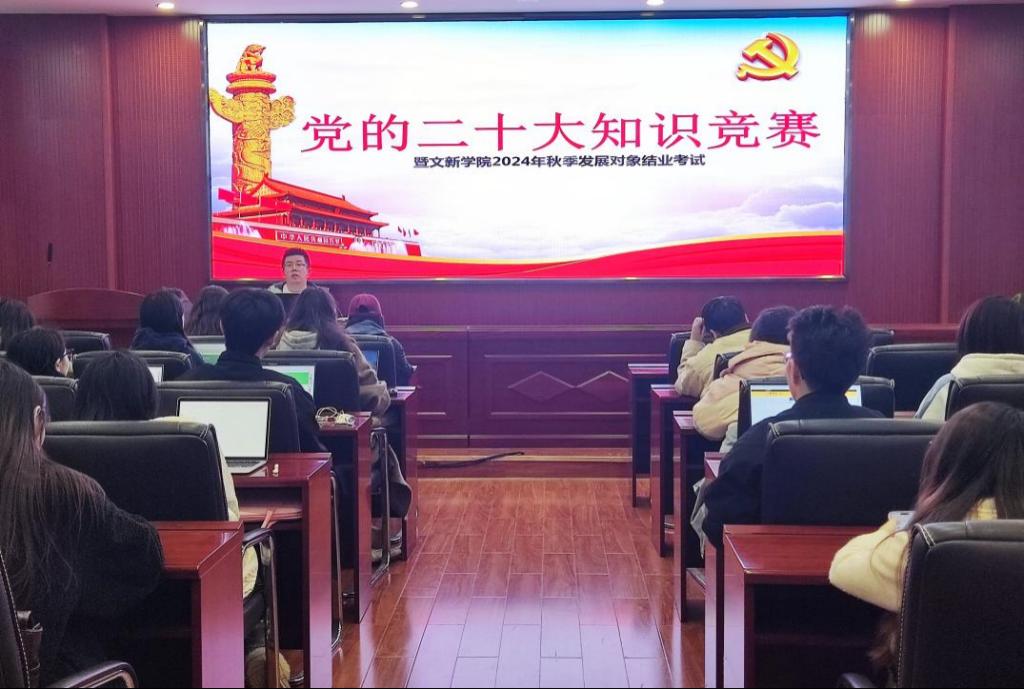 为贯彻落实党的二十大精神,积极探索“党建+互联网”新模式,进一步提升发展对象的理论知识水平,11月20日12时10分,“党的二十大知识竞赛暨文新学院2024年秋季发展对象结业考试”于william金盆岭校区九号教学楼218室成功举行。