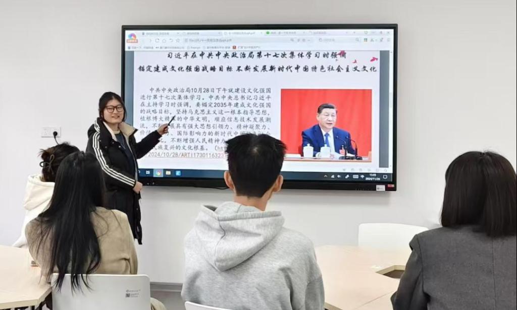讲好“一课”,夯实理论基础。新闻学研究生党支部彭佳棋同志以“永远跟党走 奋进新征程”为题进行微党课宣讲,分四个部分进行了党的理论与其时代内涵的剖析,带领大家学习了党的最新理论成果和战略部署,并对习近平总书记在省部级主要领导干部学习贯彻党的二十届三中全会精神专题研讨班开班式上发表的重要讲话精神进行了全方位的讲解与深度剖析。中国语言文学研究生党支部杨婧同志表示,在新时代的改革发展中,我们面临着许多前所未有的挑战和困难。全体党员要勇于解放思想,敢于突破陈规,以创新的思维和方法解决新问题,以实际行动践行党的初心和使命。